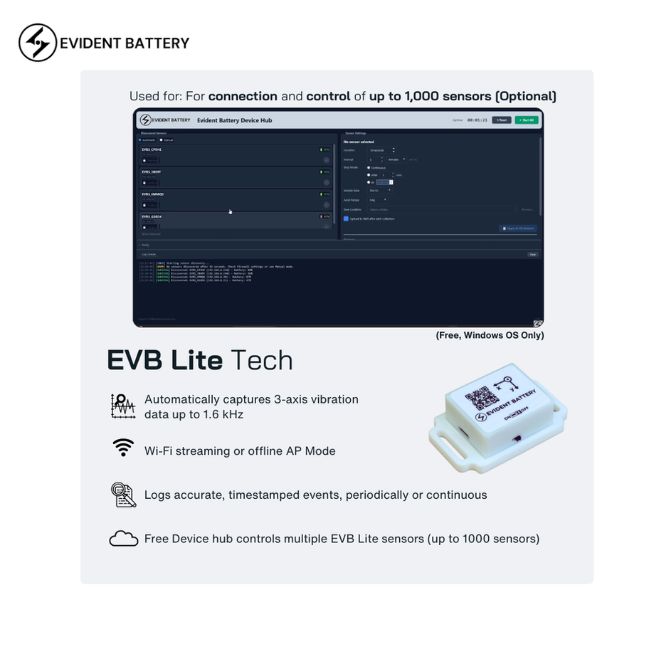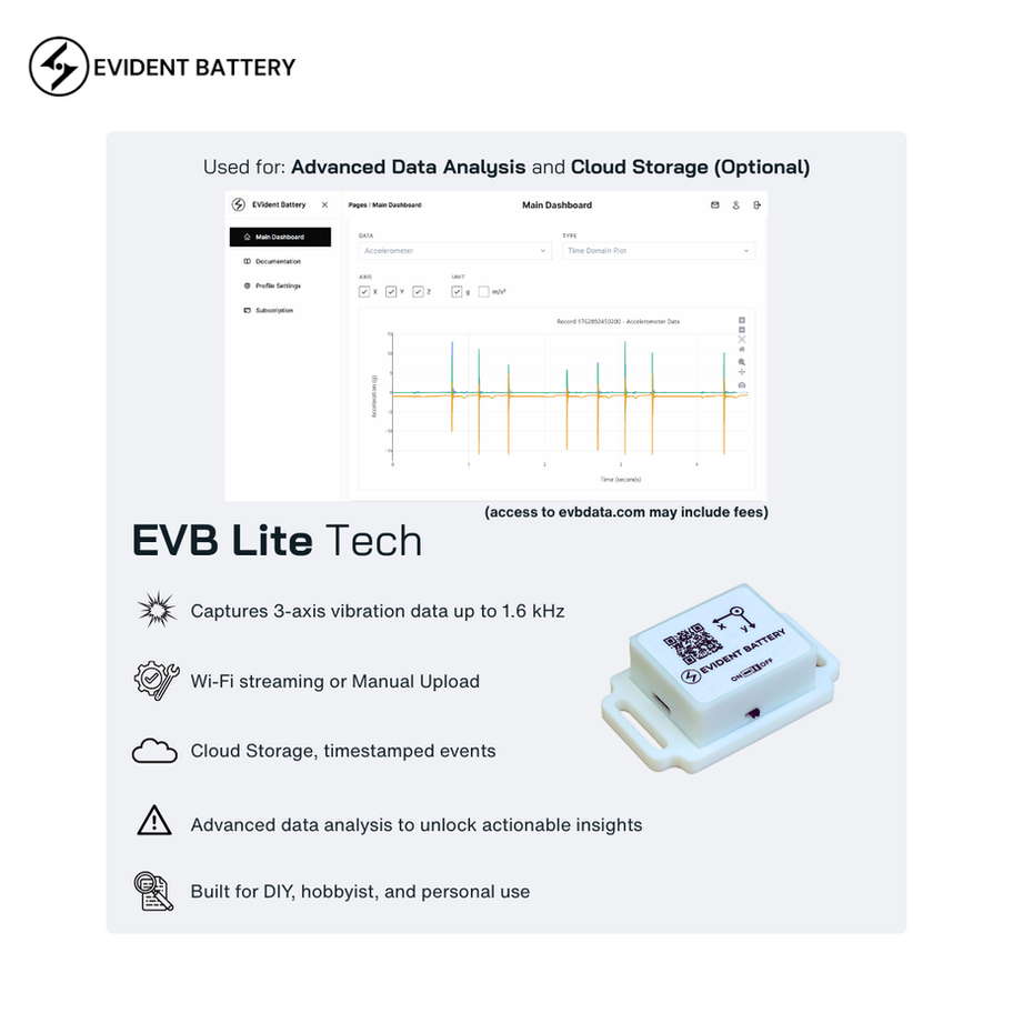 e. Compact, lightweight, and affordable, EVB Lite is designed to lower the barrier to vibration monitoring for makers, DIY builds, and home or personal projects—without the complexity of enterprise-grade systems.